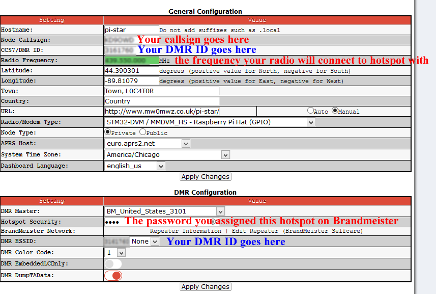 For now here are my setup for DMR on my hotspot. I will write a more intense setup in February